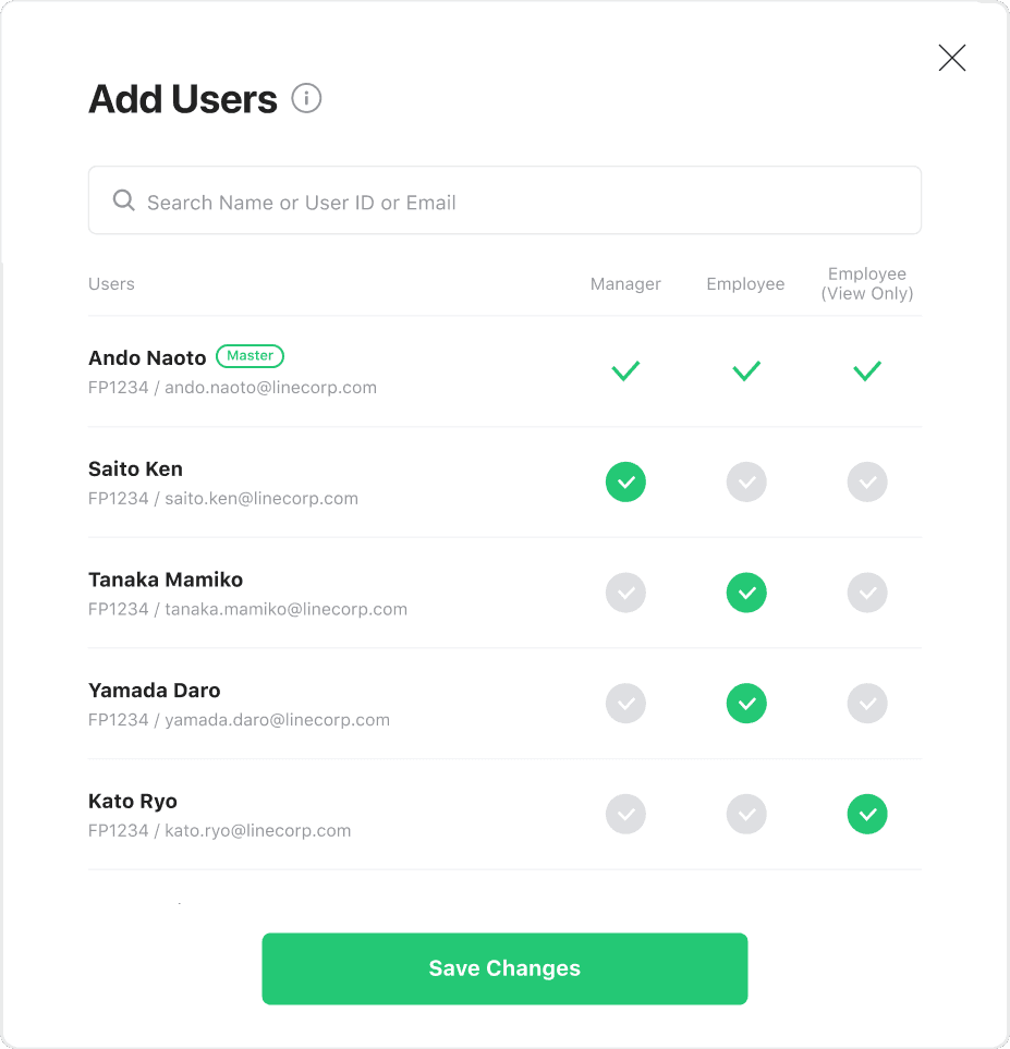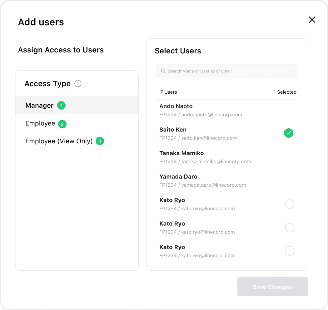 We interviewed 10+ Japanese enterprises to understand how teams are structured within business accounts, how permission levels are defined, and how financial tasks are managed across roles. We found that effective workflows depend heavily on clear role-based access control.