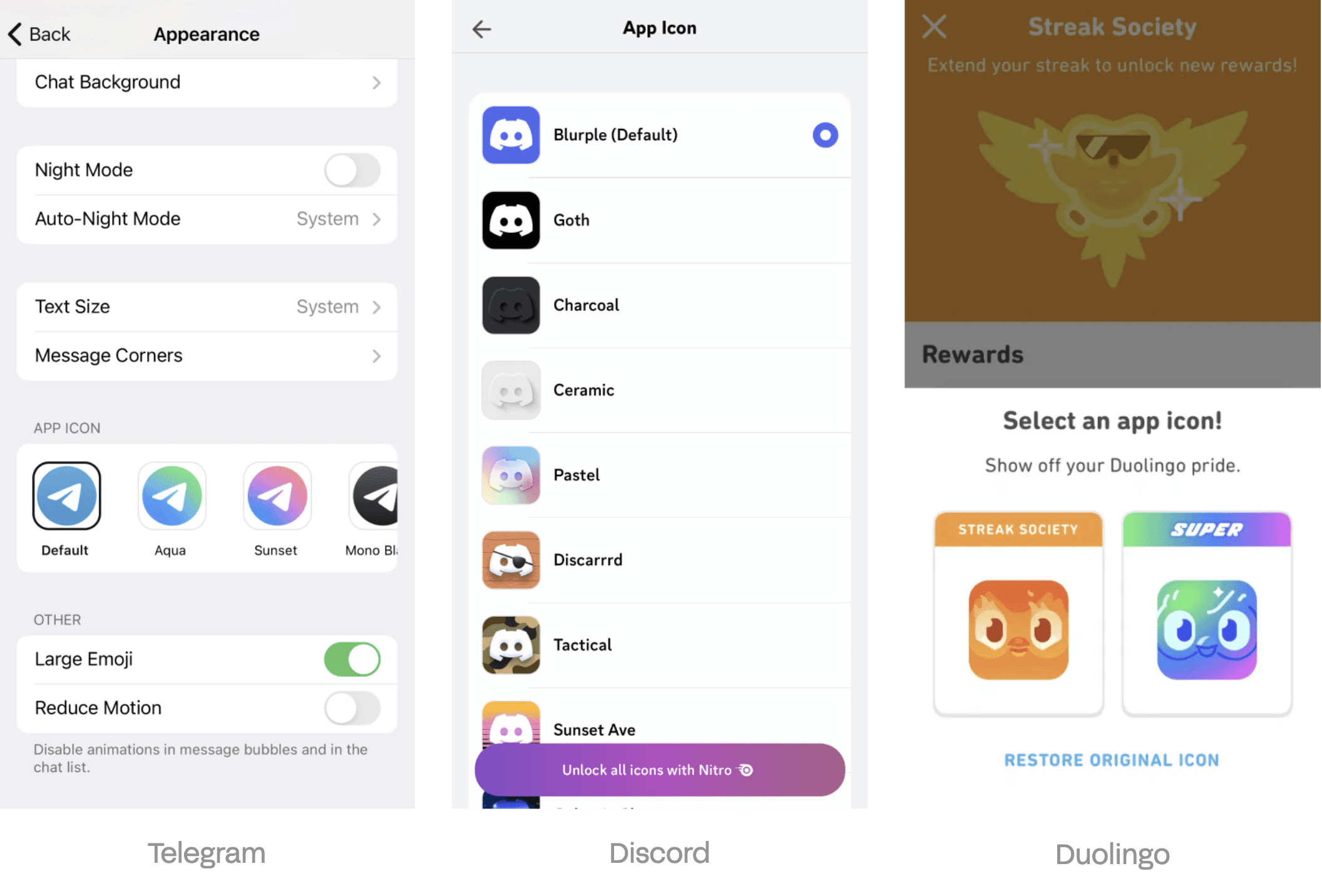To maximize the impact of the custom app icons, we also provided splash images that match the icon colors. When users changed the icon, the corresponding splash image was displayed to ensure they noticed the change.