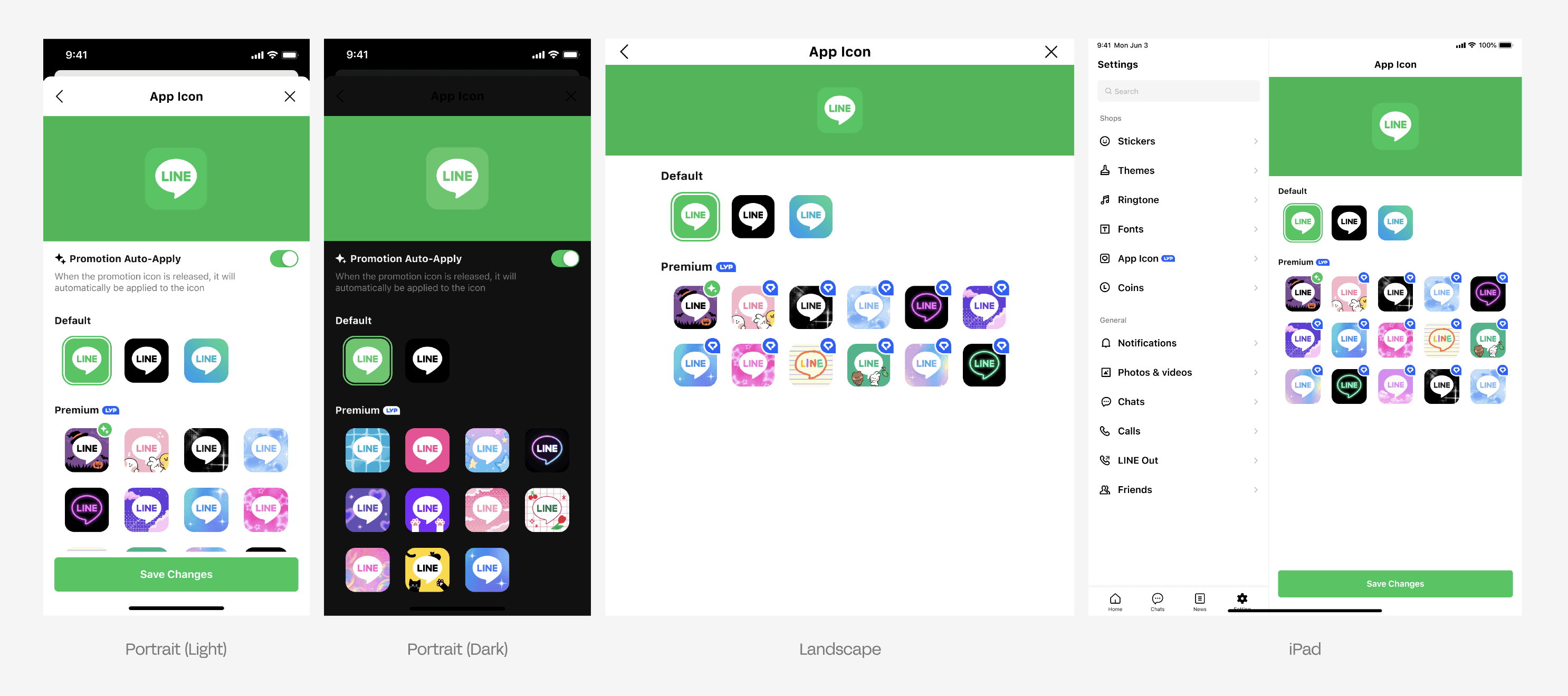 Based on user research, I made this feature easily accessible by adding an app icon screen in LINE’s settings menu, allowing users to change the icon effortlessly without an additional customization app.